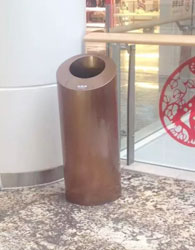 這次采購的A12玻璃鋼果皮箱型號,我們的標準按照客戶的要求來定制生產。A12玻璃鋼果皮箱垃圾桶有2種規格:直徑分別為500mm,高是800mm.玻璃鋼垃圾桶顏色為黃色。按照雙方約定的標準,事先做的樣品,發給對方參考確認,再進行做批量生產。垃圾桶頭口處貼膠條,表面光滑,無裂痕,紋邊角加層。采用玻璃鋼不飽和聚酯樹脂和玻璃鋼纖維復合而成的材質,玻璃鋼垃圾桶邊角的厚度4mm,單邊帶有煙缸。玻璃鋼垃圾桶上面絲印龍巖工業區的標語。簡潔、美觀,色澤鮮艷,經久耐用,對人體無害,不褪色油漆不脫落。