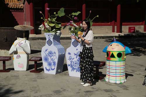 故宮博物院副院長宋紀蓉女士表示,環衛子女完成的作品放在去年古建修復之后開放的慈寧宮花園展示,非常醒目漂亮,也很匹配。這些作品也將在故宮擺放一段時間,供游客評價。宋副院長還表示,會對游客進行調查訪問,從中找出適合故宮長期作為環衛實用垃圾桶的作品。