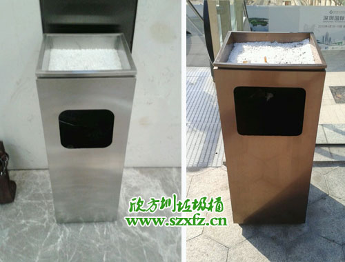 此次湖南張家界訂購的方形不銹鋼垃圾桶,是C60改造而成,區(qū)別不同與其他款式,在于頂部加有特定制的方形煙灰桶,里面放著大理石碎片。采用高檔不銹鋼材料,內(nèi)外表面光潔,減少垃圾殘留,易于清潔;配置鍍鋅板內(nèi)桶,便于垃圾清倒.金屬亮澤,高雅美觀。
