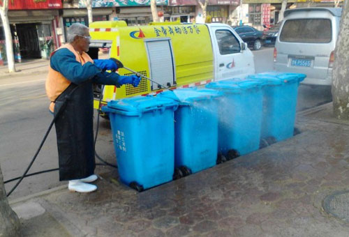 “和洗碗機的原理一樣。”市環(huán)境集團設備技術部經理胡恒昌說,垃圾桶四周的高壓噴頭很聰明,會上下來回噴清水,底座也能旋轉,確保桶內、桶外、桶蓋都能洗到。