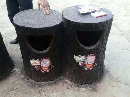 這批玻璃鋼環(huán)保垃圾桶各有特色,其中一款為樹(shù)洞造型,玻璃鋼環(huán)保垃圾桶桶身/內(nèi)膽/底座采用FRP玻璃鋼材料制造,具有防腐、防盜、防生銹、易清潔等特點(diǎn),表面涂層采用高分子耐老化膠衣涂層,色澤明快、持久.樹(shù)樁造型,大投口更為方便的投放垃圾。漫步林蔭小道中見(jiàn)著這種造型的環(huán)保垃圾桶也不失為一種童趣。