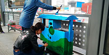 藍天白云清新美麗,可愛卡通天真童趣。鄭州快速公交站臺內(nèi)兩個原本普普通通的環(huán)保果皮箱,經(jīng)過一番裝扮與改造,成為了兩個別具藝術(shù)氣息的環(huán)保果皮箱。這兩個環(huán)保...