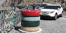 新疆公路新景點 廢舊輪胎變身“彩色垃圾箱”