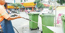 街頭垃圾桶果皮箱清理有神器 清遠街頭使用高壓噴槍