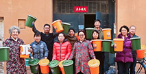“每戶分給一個橙色桶和一個綠色桶。綠色桶用來盛廚余垃圾,橙色桶用來盛其他生活垃圾,每種顏色的桶配一卷同顏色的垃圾袋。另外還有一本垃圾桶分類指導(dǎo)手冊...