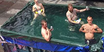 這個垃圾箱泳池一開始是出現在北費希達街(Cedar Street)社區的一個街道派對上的。CBS新聞網采訪了其中一個幫忙搭建垃圾箱泳池的人,他說:“我們將垃...