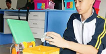 用卡紙包裝的方形桶裝外觀,樂高積木砌成的支架。這樣看似其貌不揚,甚至是簡陋的垃圾桶,雙手靠近時,卻能感應,并迅速自動打開垃圾桶蓋;當垃圾桶內水果皮、廚...