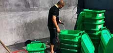 前天上午8點(diǎn),金棉小區(qū)廢棄籃球場(chǎng)的東南角就響起了一陣陣沖洗聲,清潔人員劉師傅拿著水管沖洗著一只只垃圾桶,邊上一排晾著幾十只剛洗干凈的垃圾桶。這些垃圾桶都...