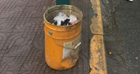 公交站用油漆桶充當戶外垃圾桶是節儉還是沒設點
