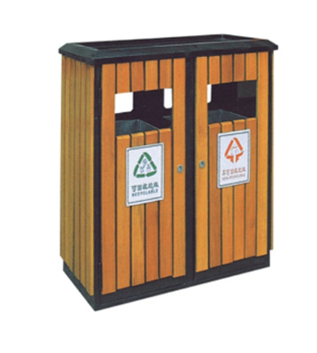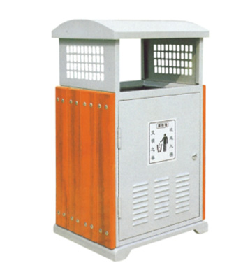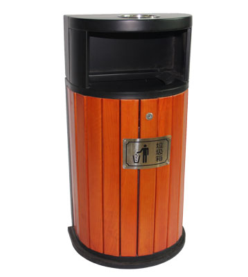 鋼木垃圾桶 鋼木選用防腐木、進口山樟木或塑木,經除蟲、防腐,烘干處理后加工成型。桶身框架冷軋鋼經酸洗磷化制作