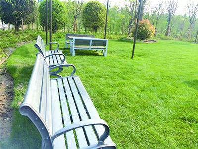 占地69.5萬平方米的生態園是上海國際旅游度假區的組成部分。行走在園內,記者發現,這個生態園基本保留了川沙農村的自然風貌,曾經鄉村的小河蜿蜒流淌,河邊蘆葦叢叢。而仔細看會發現,道路旁、草坪上的靠背長椅上標注著:本長椅由3700個牛奶飲料紙包裝再生利用制成;垃圾桶上標注著:我是用900個牛奶飲料紙包裝再生利用制成的哦。