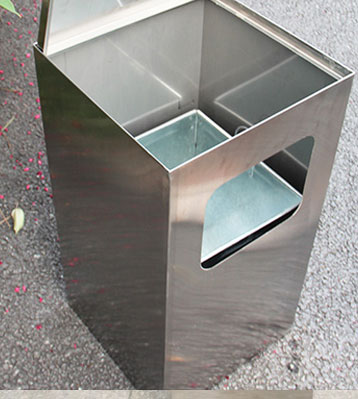 欣方圳不銹鋼果皮箱采用201優質不銹鋼材質制作,專業焊接打磨成型,美觀實用方便。