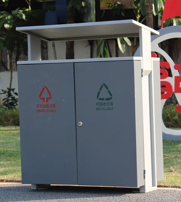 方形環保分類垃圾桶打造上海園林戶外清潔環境