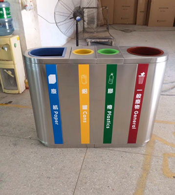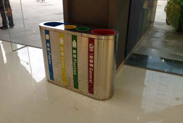 欣方圳商場分類垃圾桶,產品防撞設計,避免高人流時不經意的磕碰對人身造成傷害。