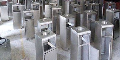 欣方圳專業生產不銹鋼垃圾桶,車間有數控折彎機、數控沖床、滾圓機、數控車床、激光切割機、送樣機、鏜床、二保焊機等行業先進設備。