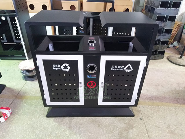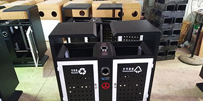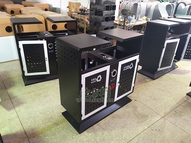 欣方圳定制噴塑分類垃圾桶表面經過除油、噴砂防銹處理后,再進行酸洗磷化處理;表面清理干燥后整體進行靜電噴涂或烤漆處理.。