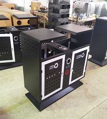 戶外鋼制垃圾箱表面經過除油、噴砂防銹處理后,再進行酸洗磷化處理;表面清理干燥后整體進行靜電噴涂或烤漆處理,箱體沖孔通風防止內部生銹。