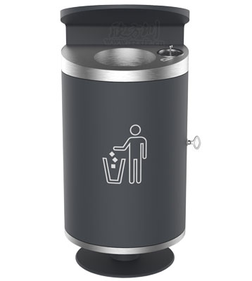 市政道路其他垃圾桶整體深灰圓形設計,外殼鈑金及內桶表面采用啞光噴涂工藝,桶頭面板為304不銹鋼拉絲面板,桶身側方開門絲印小人垃圾投放標。