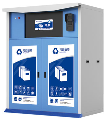 • 產品特點:智能垃圾分類回收箱分別回收紙張、塑料、金屬、玻璃、紡物、有害、廚余、其他等八種常見可回收再生資源。內置智能自動稱重模塊,后臺時刻檢測回收箱垃圾重量,滿溢自動停用功能并自動發送預警信息及時清運;帶感光燈控開關傍晚會自動開啟照亮功能;用戶身份識別系統,可追塑垃圾投放來源;后臺數據統計,積分兌換禮品。
