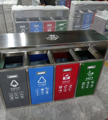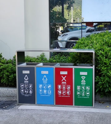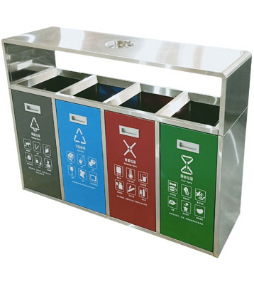 • 使用范圍:不銹鋼戶外四分類垃圾箱表面光滑、亮麗,是市政、企業、學校、小區、酒店、機場、汽車站等戶外分類垃圾收集擺放的首選。