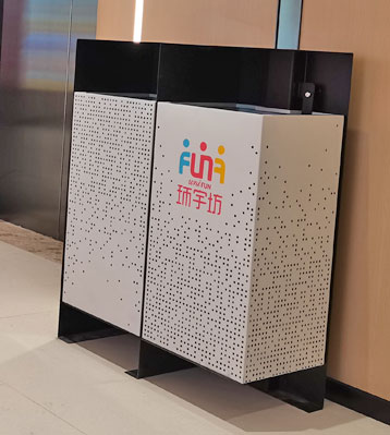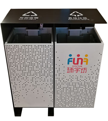 • 產品名稱:商場方形烤漆不銹鋼沖孔景觀分類垃圾箱