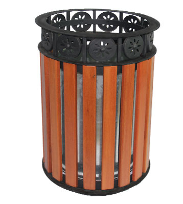 • 產(chǎn)品名稱(chēng):公園花邊鋼木單桶垃圾桶