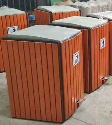 欣方圳戶外腳踏式鋼木單桶垃圾桶原材料