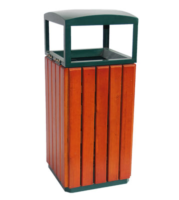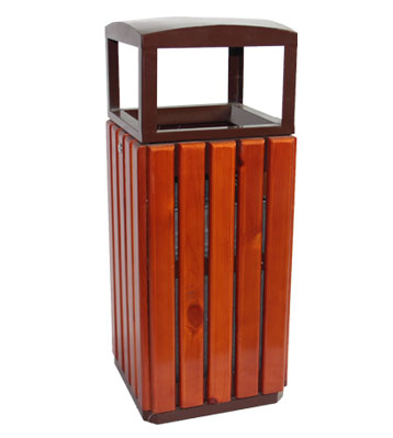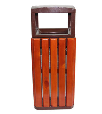 戶外鋼木單桶垃圾桶桶頭部分展示