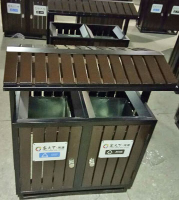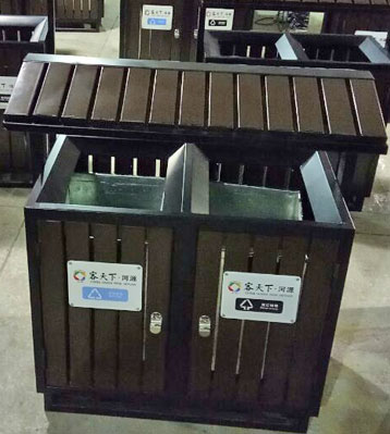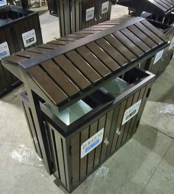 • 產品材質:屋形鋼木分類垃圾桶定制可選進口實木(防腐木.紅胡桃.山樟木等)、鋼結構、塑木等。