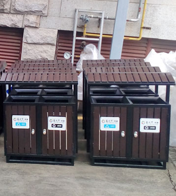 屋形鋼木分類垃圾桶戶外擺放圖