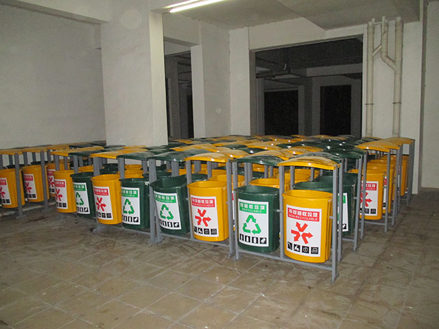 湛江黃坡鎮政府訂購玻璃鋼分類垃圾桶